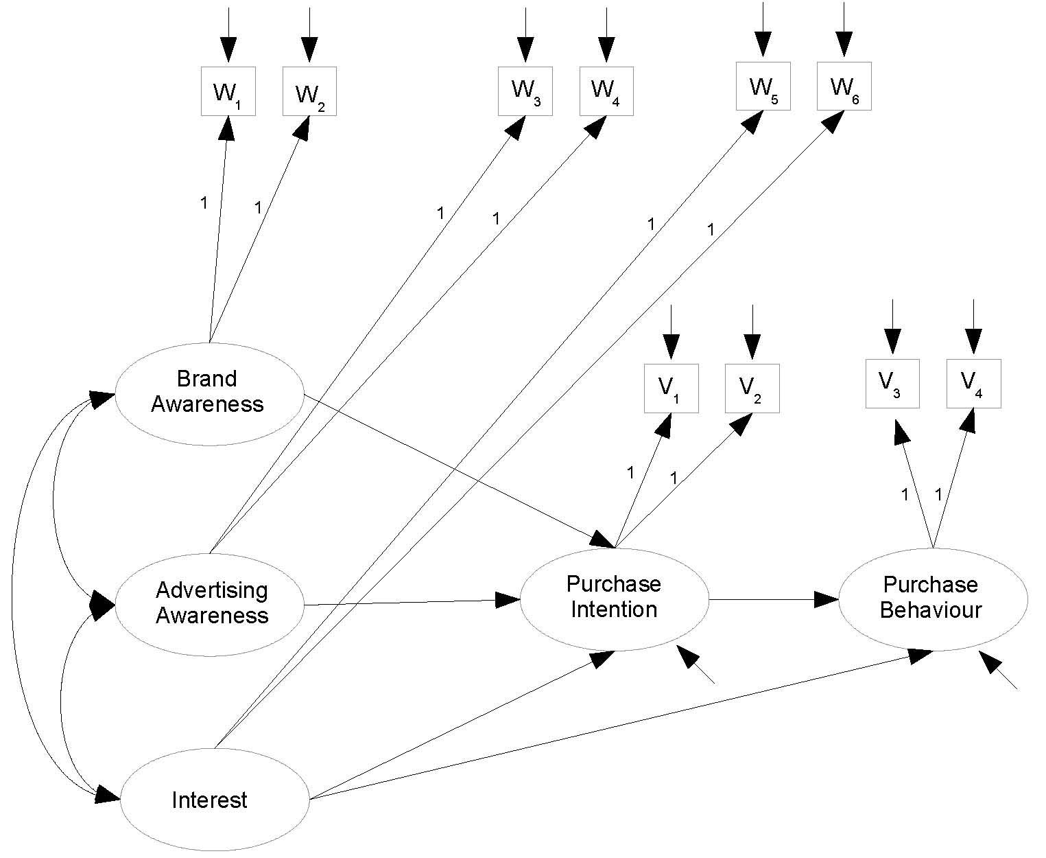 + BrAw ~~ phi13*Inter # Cov(BrAw,Inter) = phi13